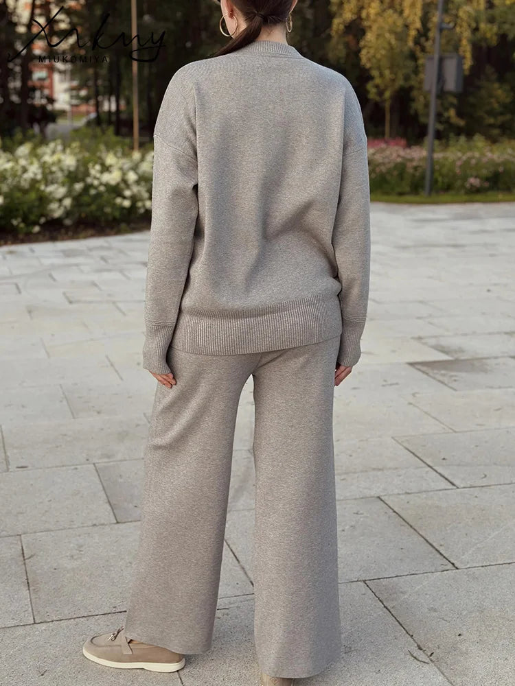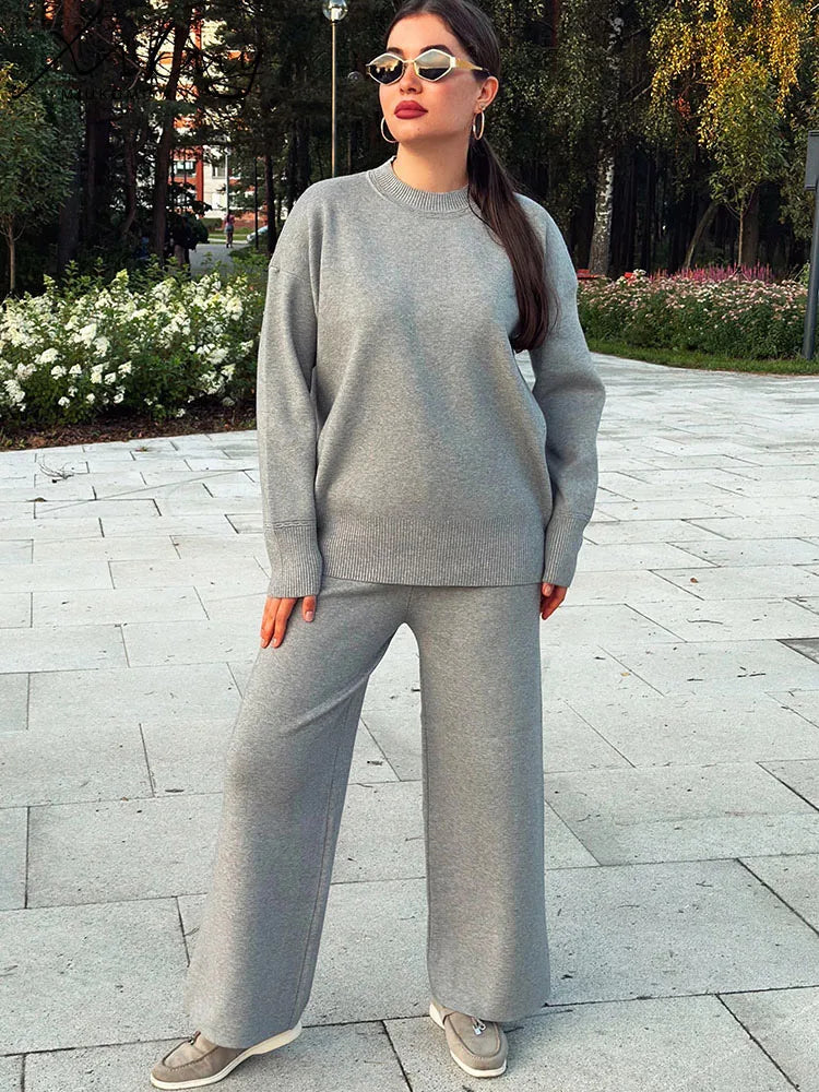 Ensemble Femme Tricot Automne Hiver Pantalon Large